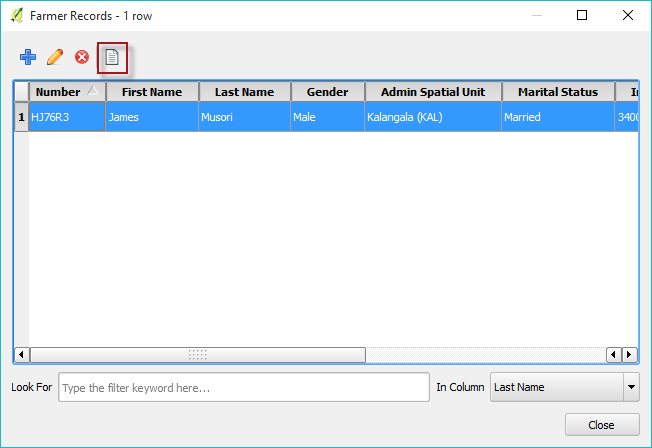 The Entity Browser of a spatial unit or any other entity is now accessible in the Entities menu. This enables the user to edit, delete and view document of a spatial unit record. In addition, by single selecting a record, the user can preview the record’s geometry in QGIS Map Canvas as shown below.