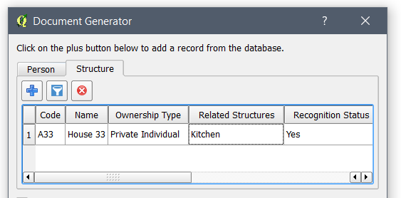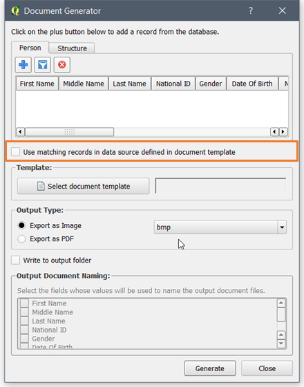 Note: Only matching templates to the selected entity load. For instance, a template that used Person as a Referenced table in STDM Data Source of document designer will not be visible when you want to generate documents by selecting a Structure record.