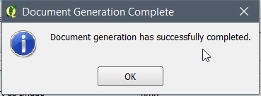 If the record selected is found in the table that the template used, you will view a message that shows that the generation was successful as shown below.