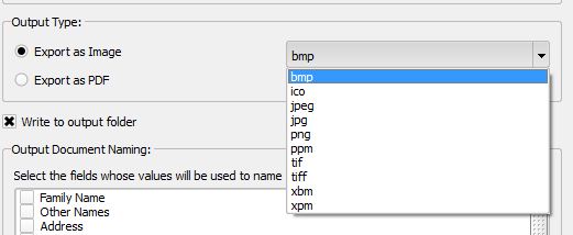 If you have chosen the Export as Image radio button, the image format drop down menu becomes active. You can then select an image format that you want (as shown below).