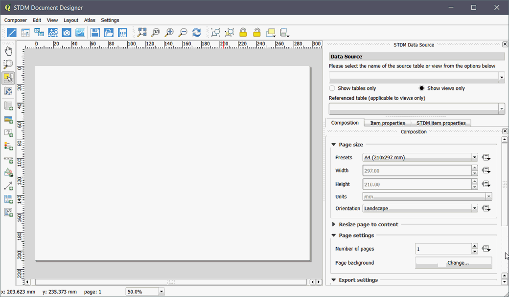To start the Document Designer, click on its button on the STDM toolbar as shown below.